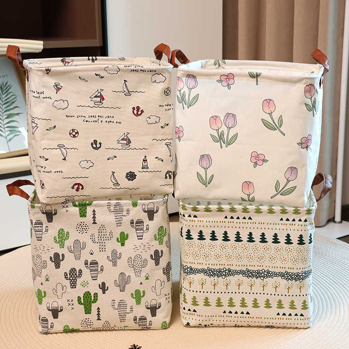 Kingwillow Household Fabric Storage Basket Dirty Cloth and Toy Storage with Handle Rope Material Foldable Laundry Basket