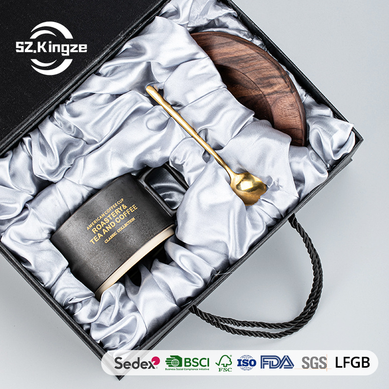 Kingze Custom Logo Luxury Ceramic Coffee Mug Set Modern Design Style Porcelain Tea Cups with Gift Box