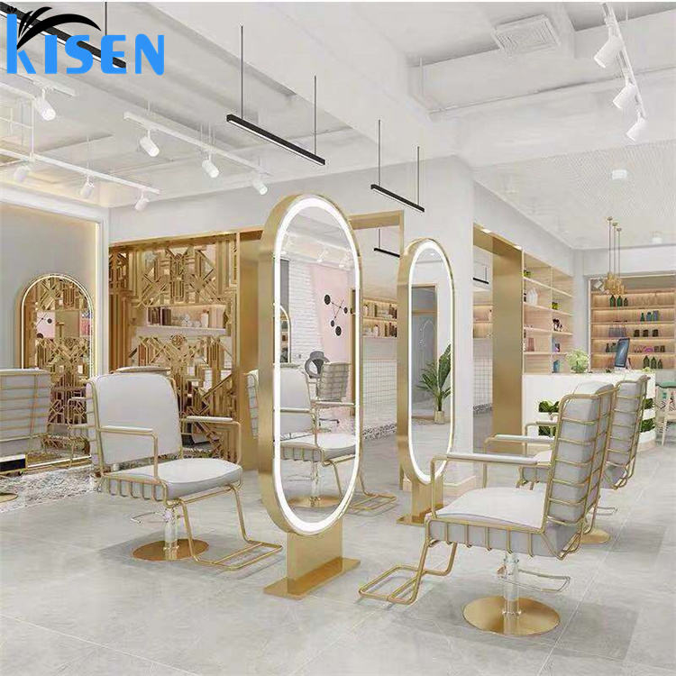 Kisen High Quality Large Full Length Hairdresser Salon Furniture Wall Mounted Hairdressers Make Guided Beauty Salon Mirror