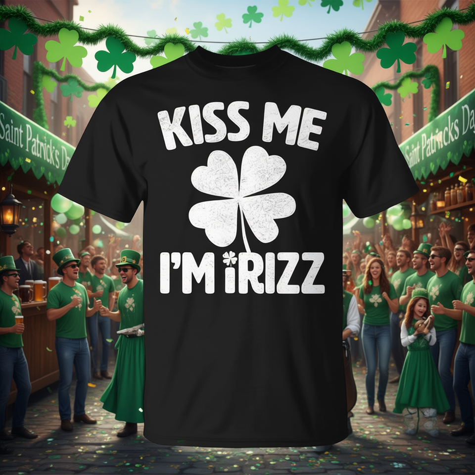 Kiss Me I'm IRizz T-shirt Premium con trifoglio per il giorno di San Patrizio