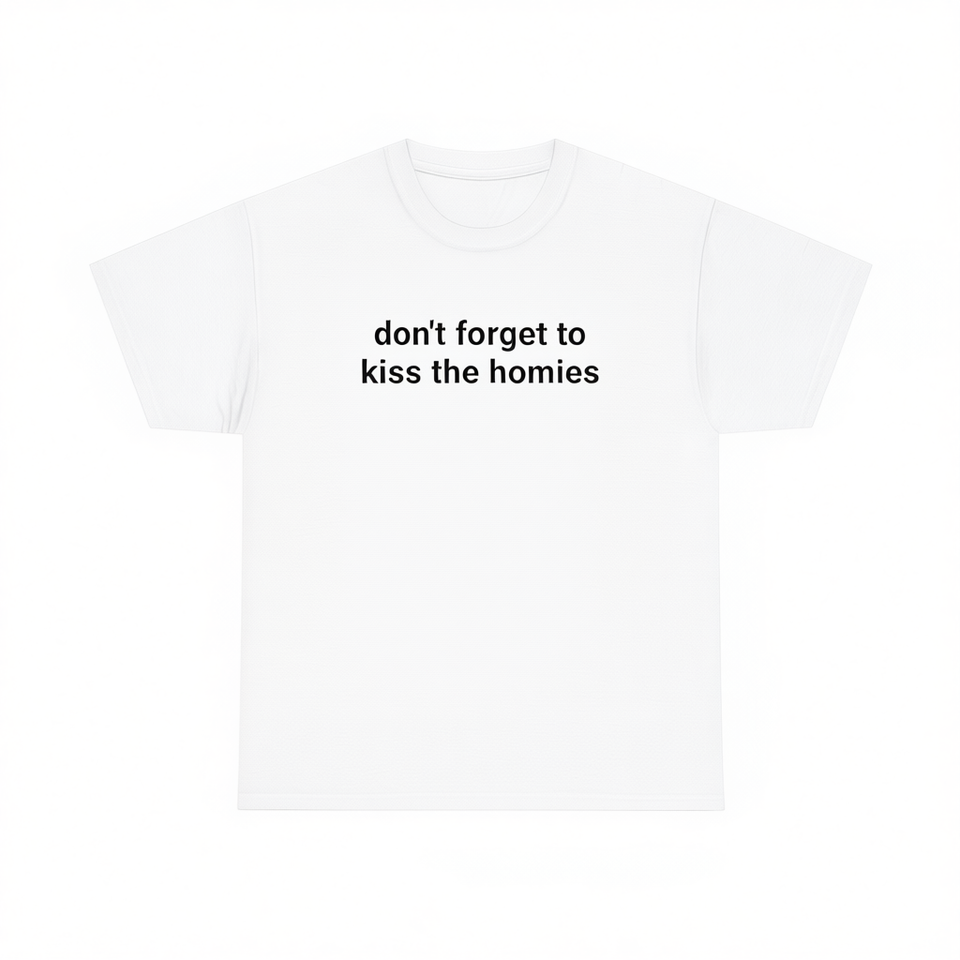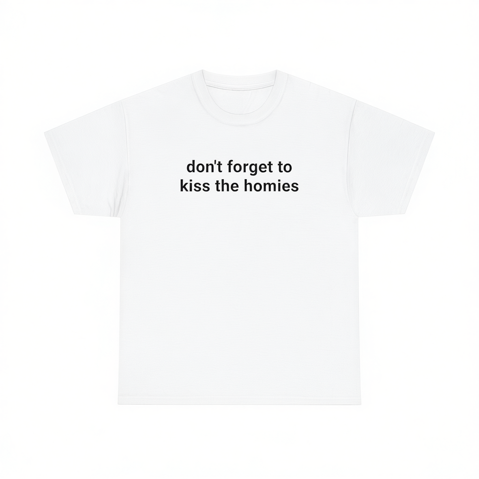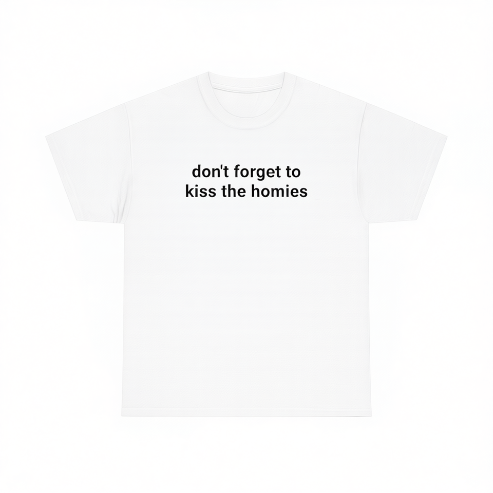 Maglietta Kiss The Homies, Divertente T-Shirt con Meme Irotonico e Sarcatico, Unisex per Adulti, Manica Corta, Girocollo, Stampa Digitale Promozionale