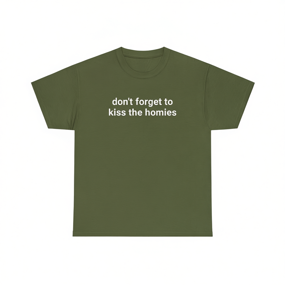 T-shirt Kiss The Homies a maniche corte in cotone con scollo rotondo, maglietta promozionale unisex per adulti