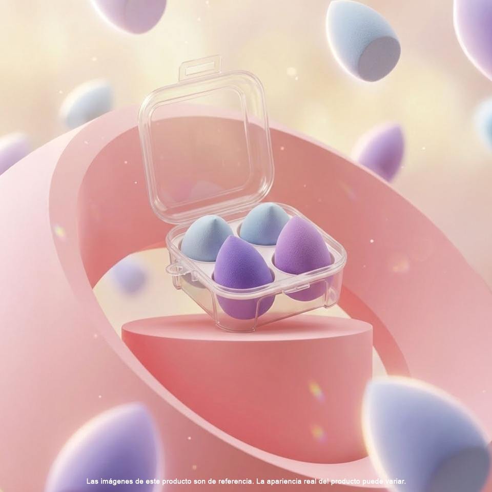 Kit Generica con 4 Spugne per Trucco in Custodia Trasparente, Include Applicazione Perfetta, Finitura Professionale, Premium Lavabile TW