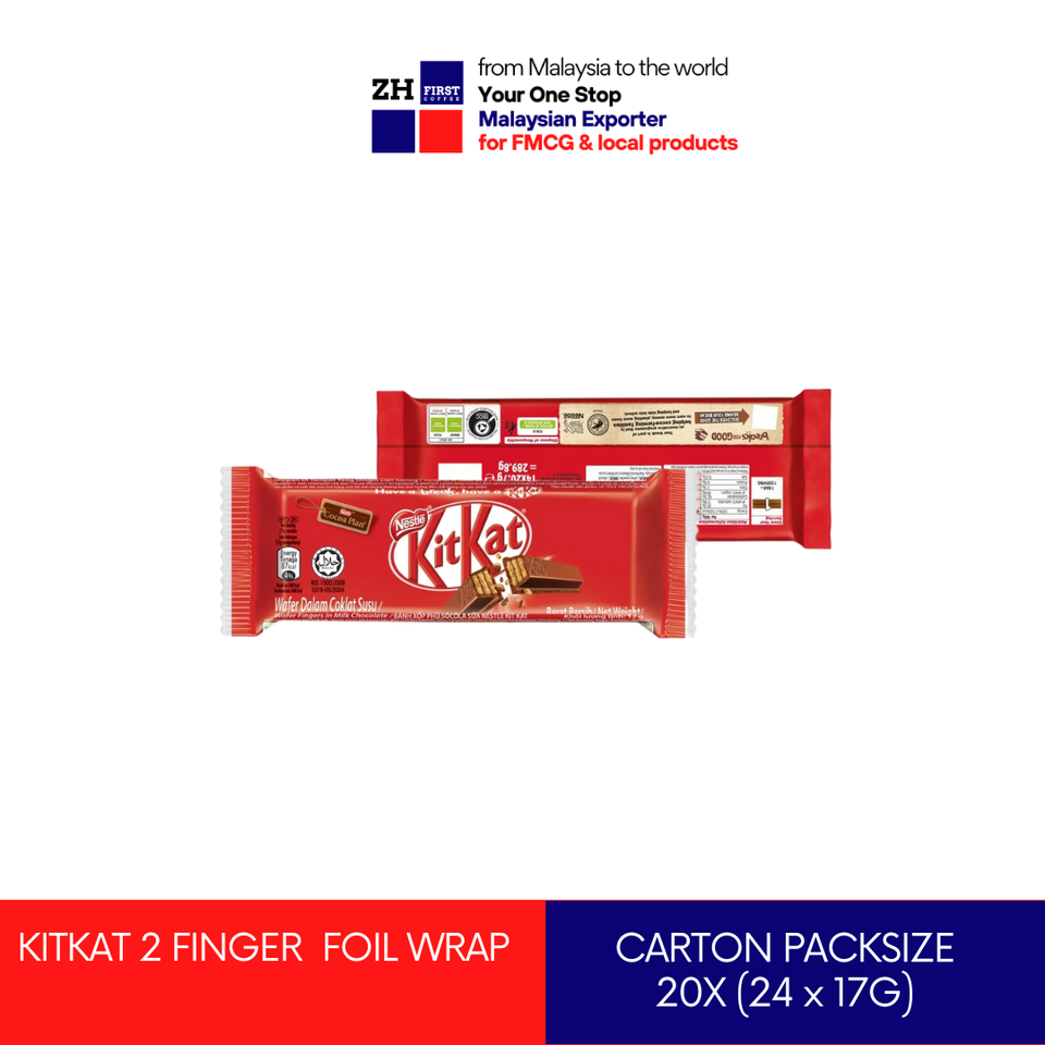 Kit Kat 2 Finger Wafer Ricoperto di Cioccolato in Confezione di Alluminio 17g Distributore Autorizzato Malesia Prezzo di Fabbrica all'Ingrosso Acquisto in Grandi Quantità