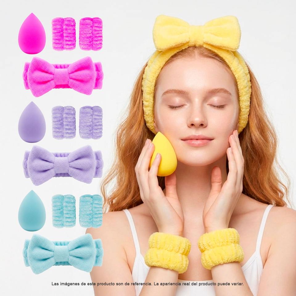 Kit di Pulizia Viso Belleza 3-in-1 con Spugna Diadem e Fasce per Capelli/Mani - Confezione Portatile in Fibra Sintetica con Sacchetto a Bolle