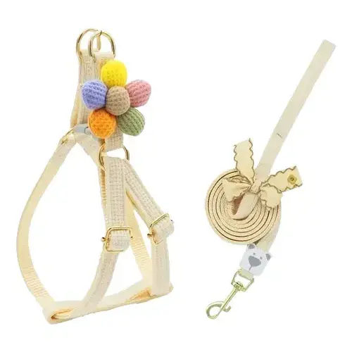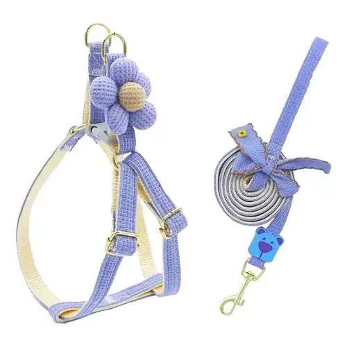 Kit of 2 leashes and harnesses for cats and small dogs, flower design