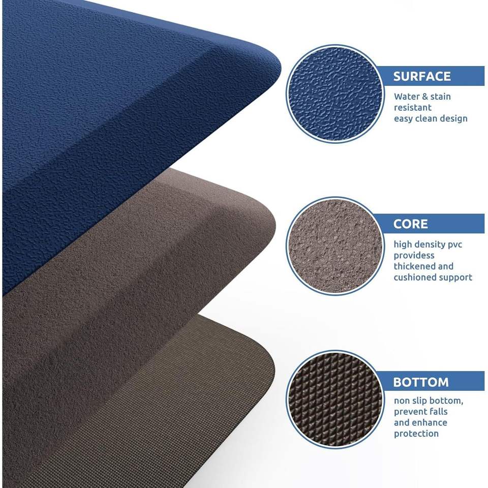Tappetino Antifatica per Cucina 44x71 cm, Resistente all'Acqua, Antiscivolo, Comodo Tappeto da Pavimento per Uso Domestico e in Cucina