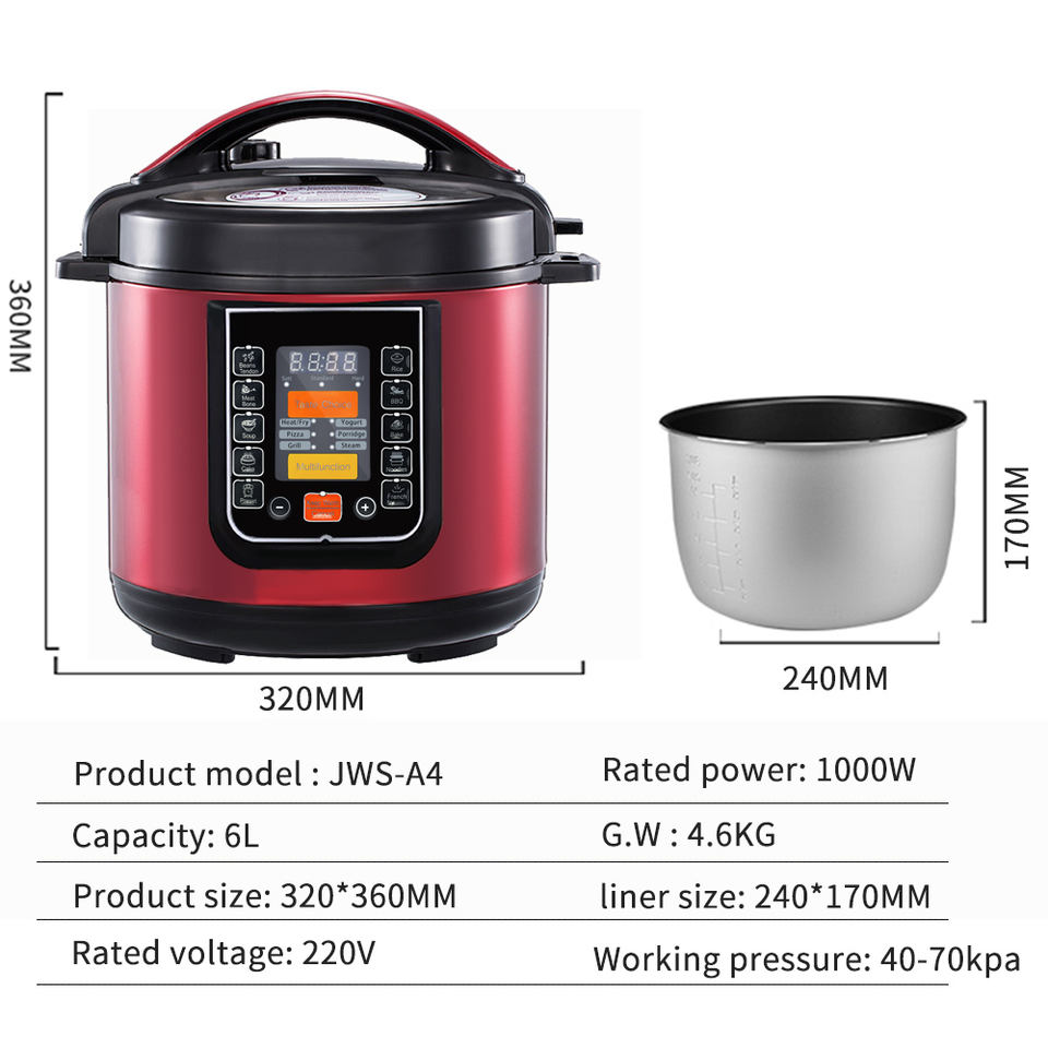Funzione:Preregolamento di tempo di cottura, Display A LED, POT interno del rivestimento antiaderante, Protezione contro il surriscaldamento, Dispositivo del rilascio di pressione, Regolazione della Pressione regolabile