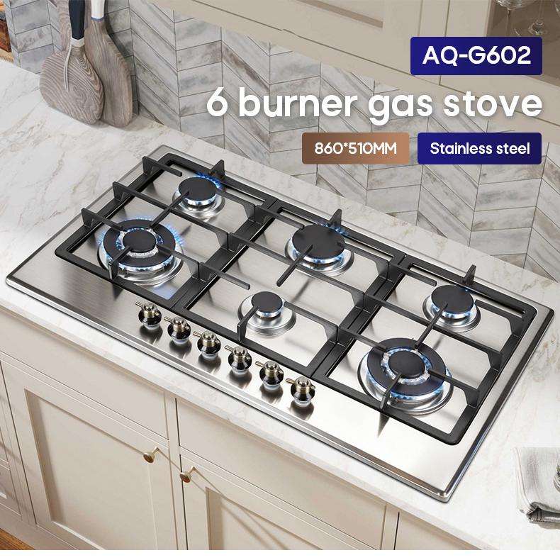 AQ-G602 Piano cottura gas 6 fuochi acciaio inox SUS201, bruciatori Sabaf (Chinese) 3,3+3,3+3,1+1,3+1,3+1,0 kW, GPL/NG, acc. auto