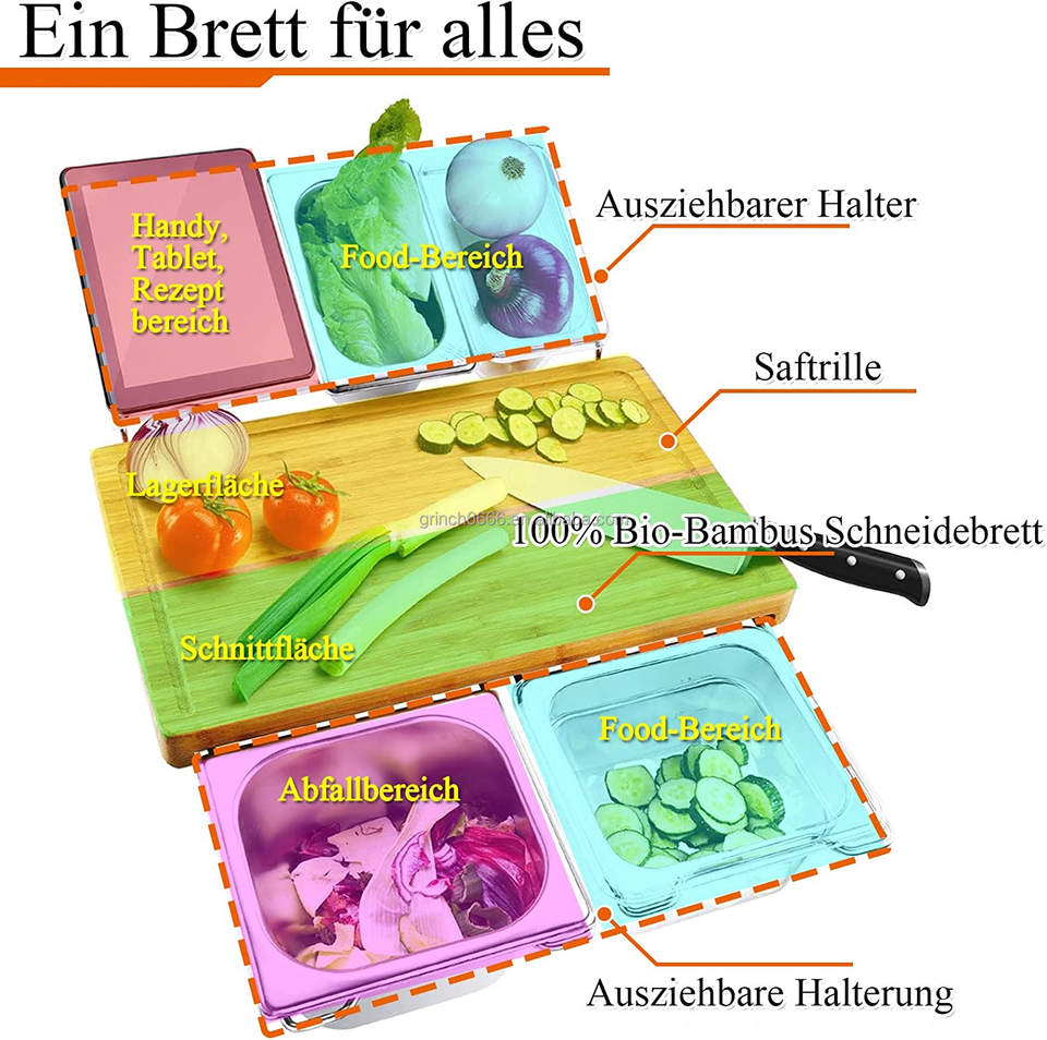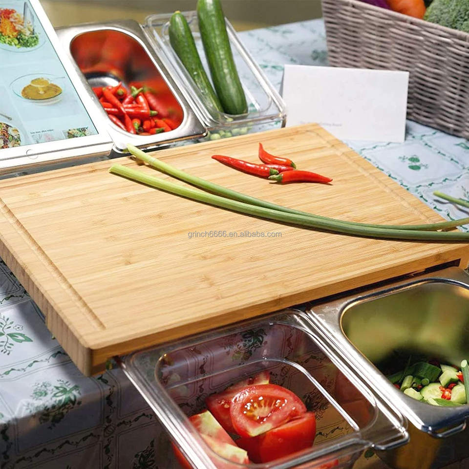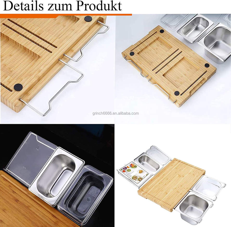 Tagliere da cucina tagliere da lavoro con vassoio antigoccia vassoio antigoccia in bambù organico in acciaio inossidabile