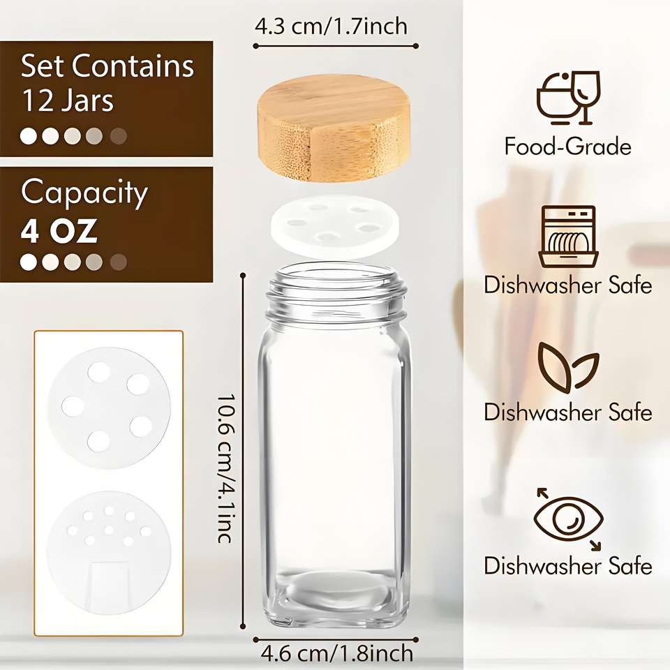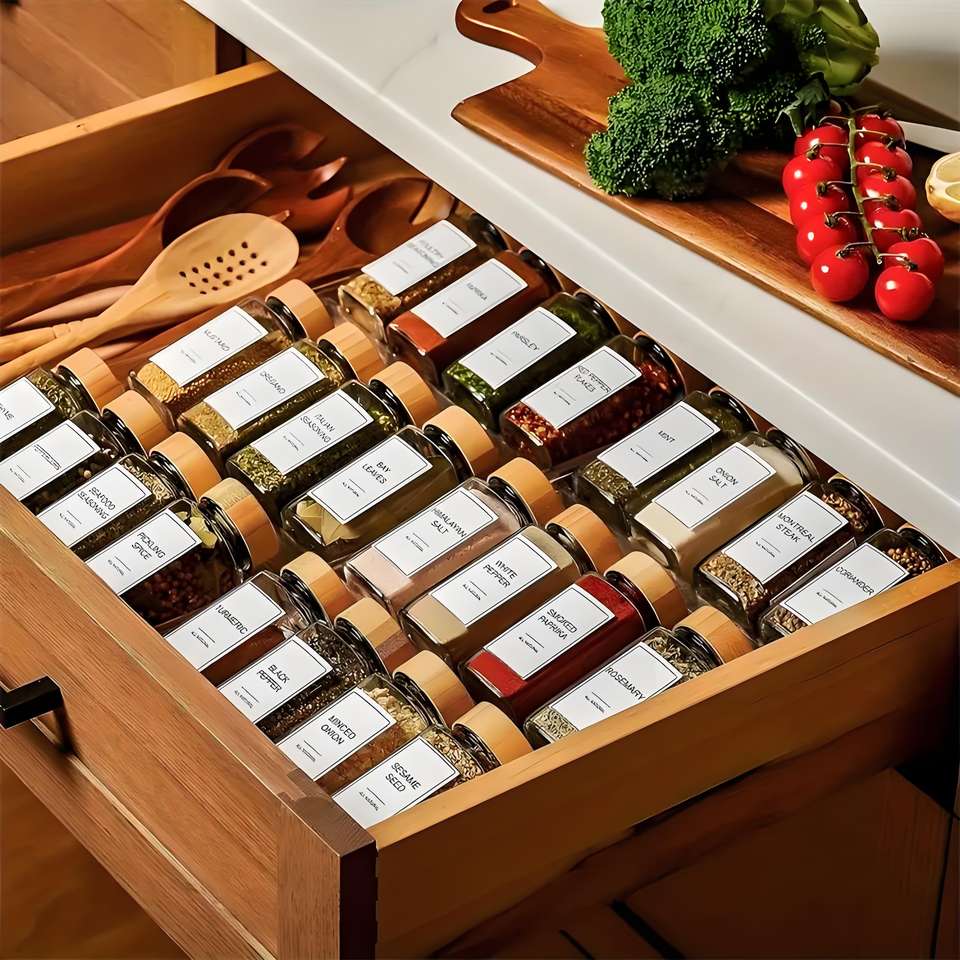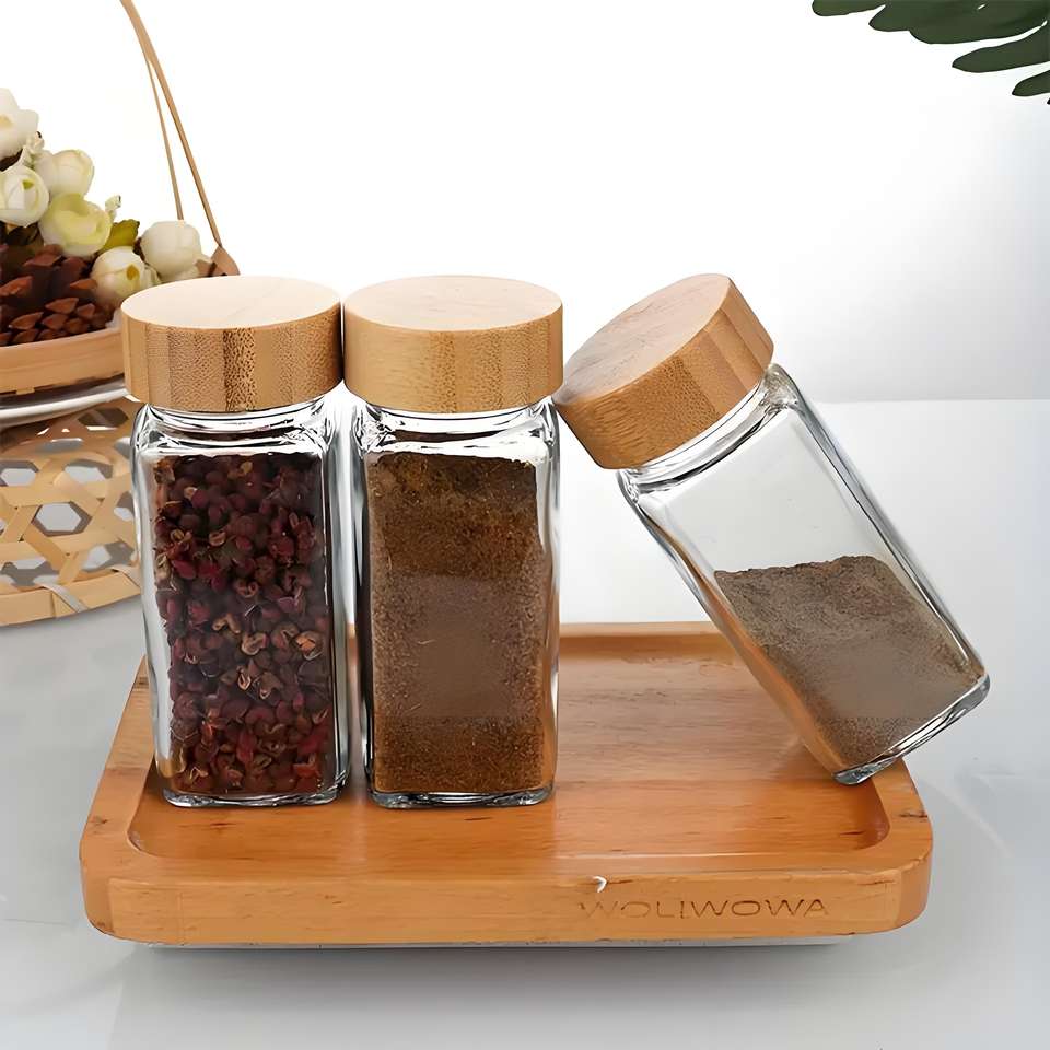 Cucina eco-friendly coperchio in legno di bambù vetro 120ml 4oz barattoli di spezie 12 pezzi 24 pezzi 36 pezzi barattoli di spezie Set con etichette