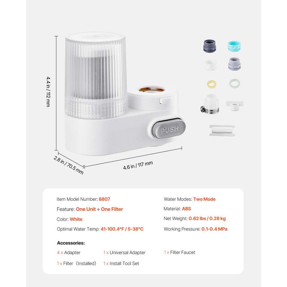 Filtro Acqua per Rubinetto da Cucina, Depuratore Verticale in Fibra di Carbonio per Lavello, Rimuove Cloro e Piombo, Filtro Singolo