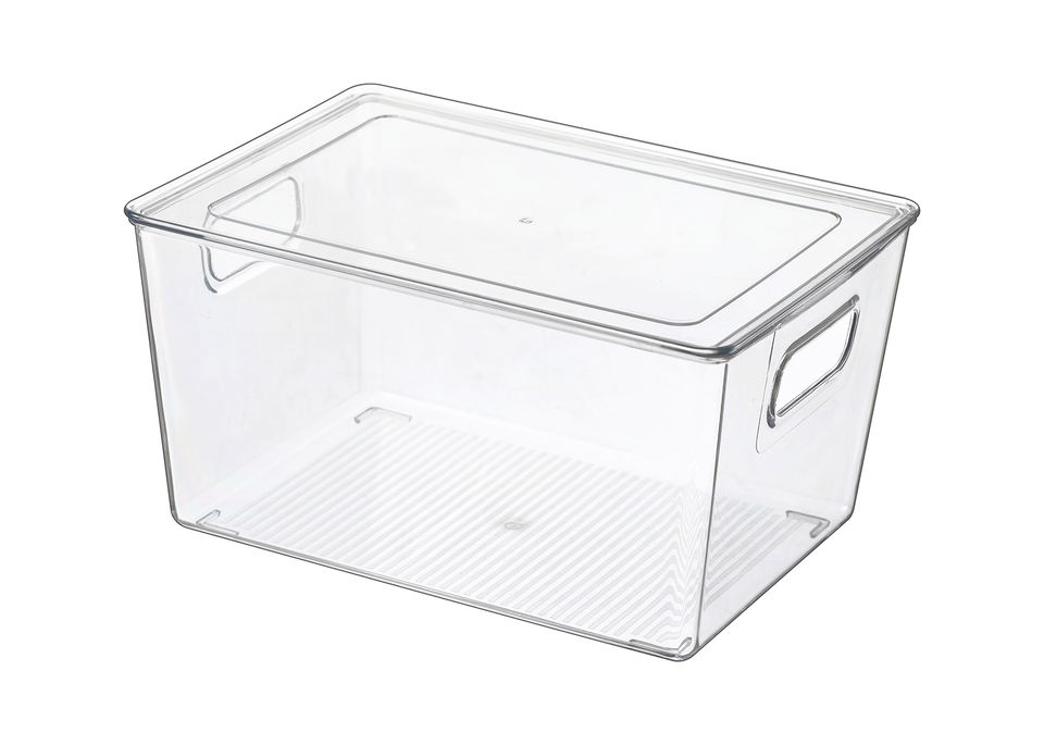 Set di Contenitori Organizer per Frigorifero in PET Trasparente con Coperchio e Maniglie, Scatole Impilabili per Alimenti da Cucina