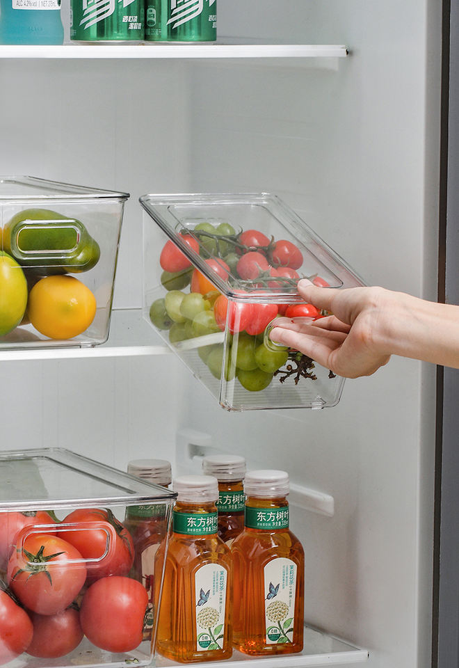 Nome del prodotto:Cestini frigo per animali domestici trasparenti con manici impilabili