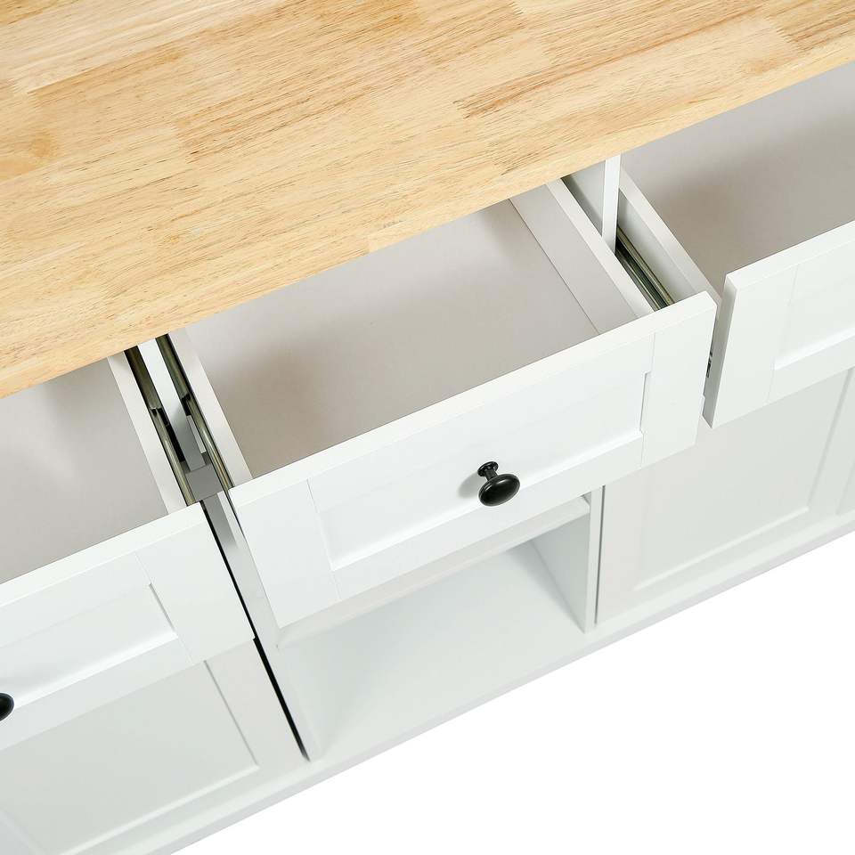 Carrello da Cucina con 5 Ruote, Isola con Piano Ribaltabile in Legno di Gomma, Armadietto con Ante e Scaffali Interni per Stoccaggio