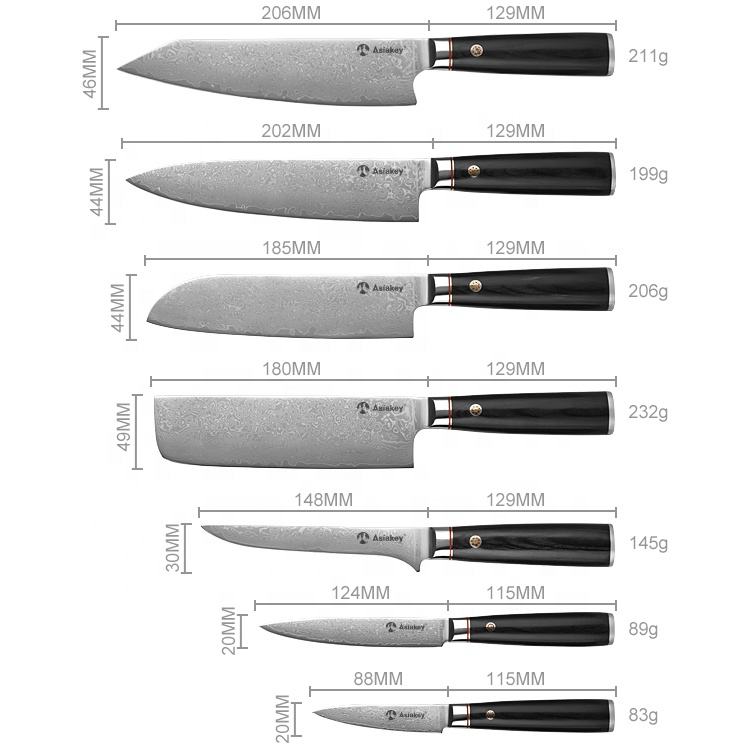 Nome del prodotto:Set di coltelli professionali da 7 pezzi per chef