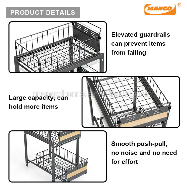 Organizzatore a Due Ripiani con Cassetto Estraibile in Metallo per Cucina e Ufficio
