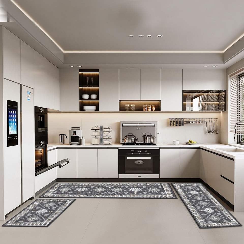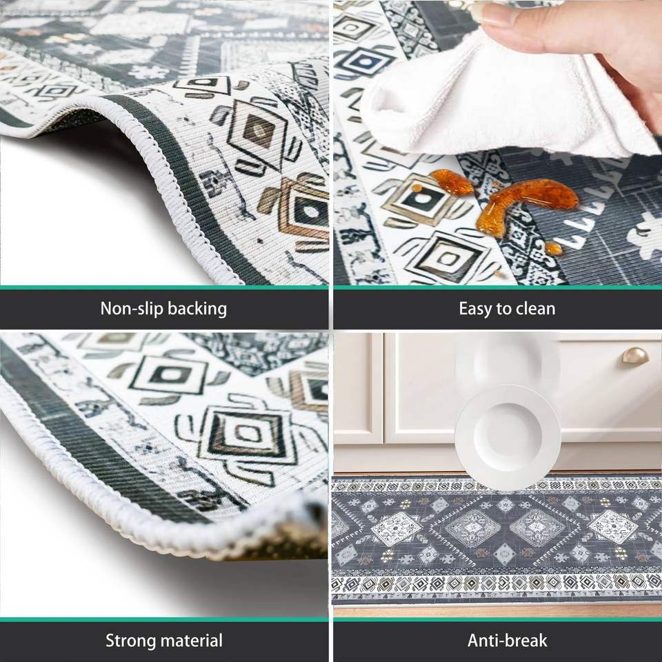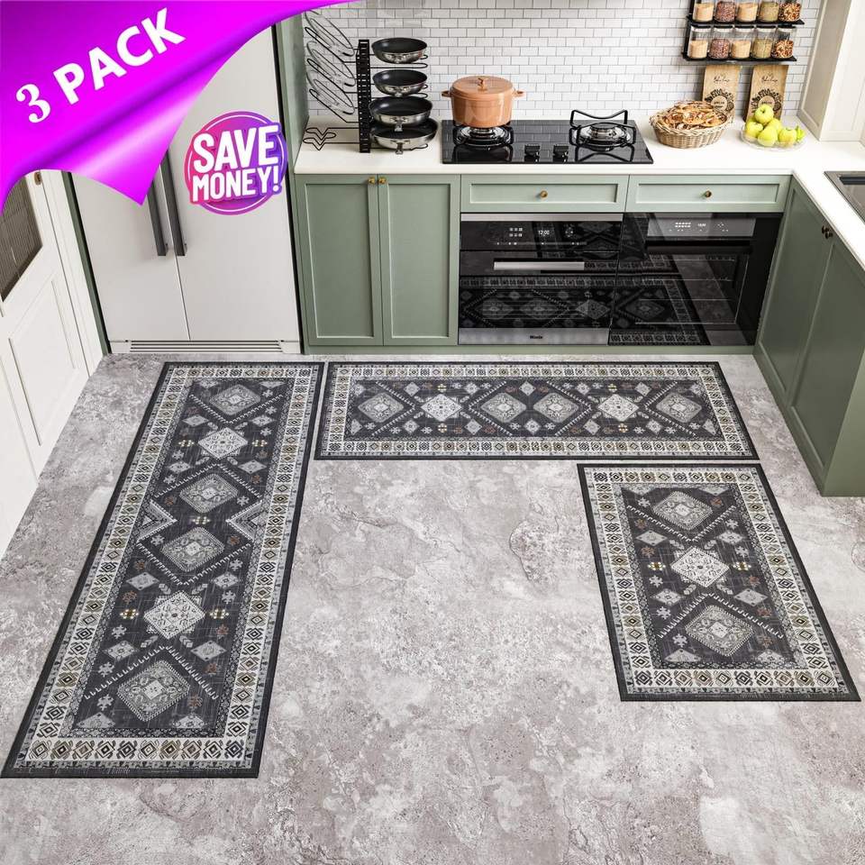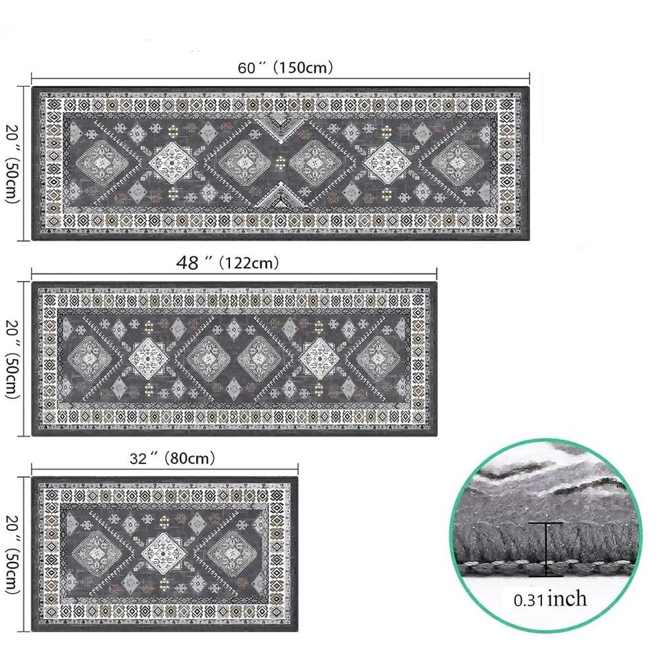 Set di 3 Tappeti Runner da Cucina Antiscivolo, Tappetino Lavabile Stile Rustico per Corridoio e Ingresso