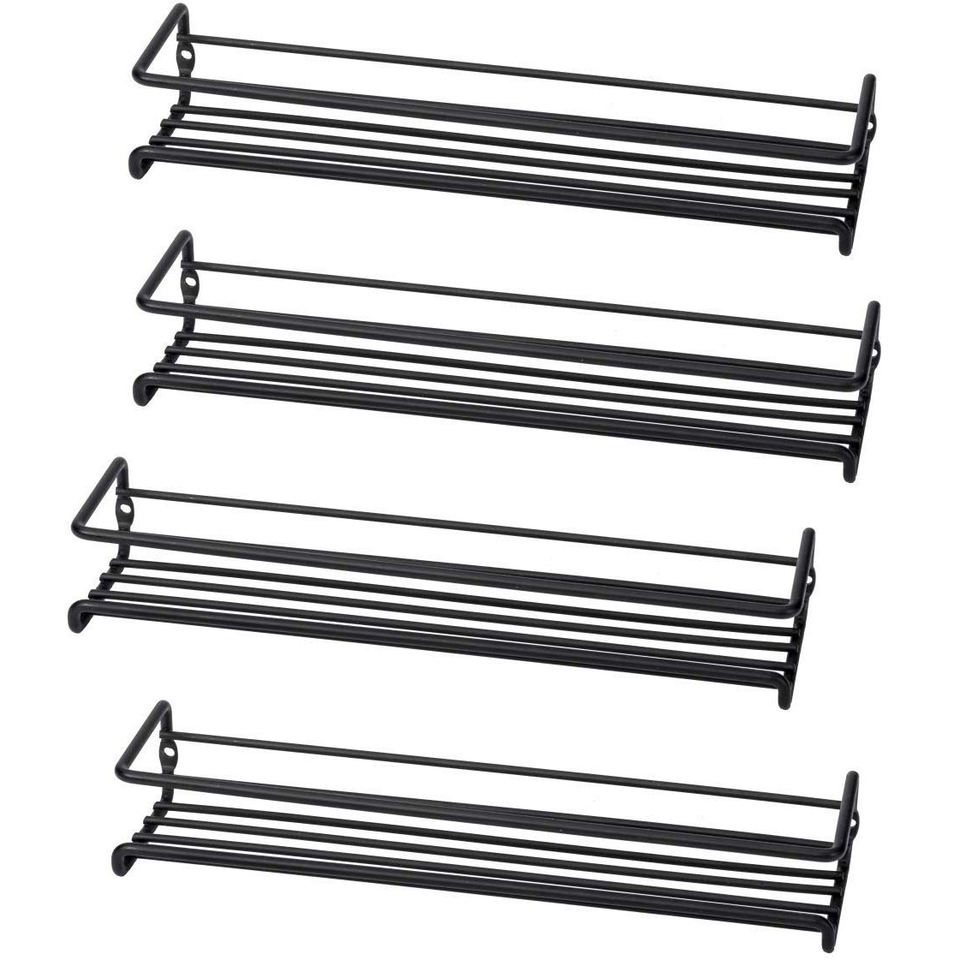 Cucina Set di 4 Black Wall Mounted Montaggio Barattolo di Spezie Rack Organizer Metallo Appeso Supporto per Porta Dell'armadio