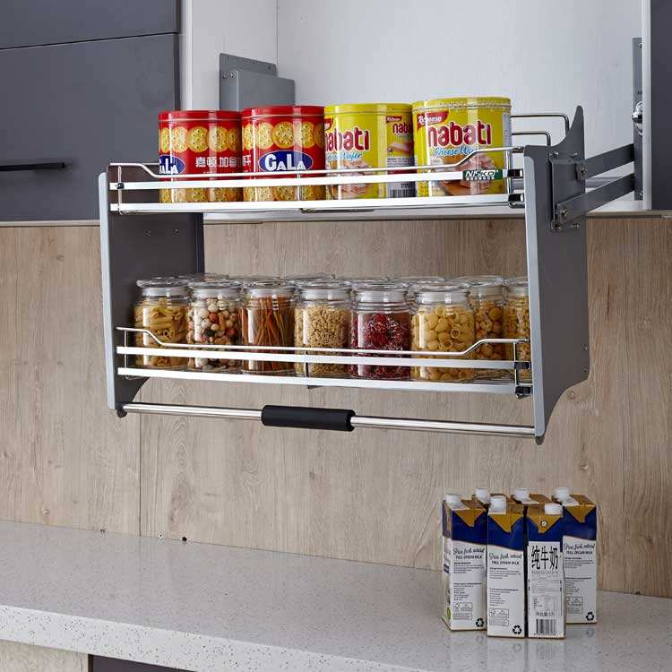 Immagazzinaggio della cucina Lift up sistema piatto cremagliera in acciaio inox piatto cremagliera cestino Ascensore Dell'organizzatore Carrello