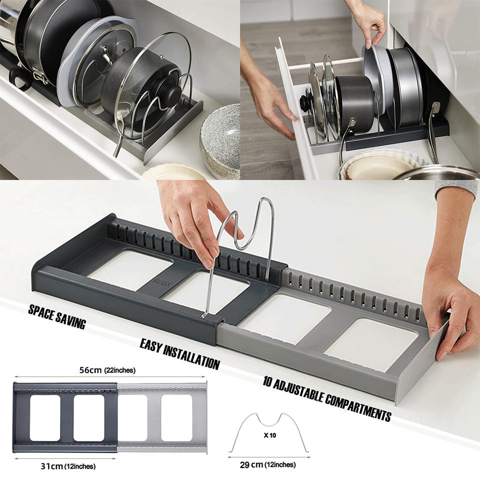 Organizzatore Espandibile per Cucina 7/10 Ripiani, Porta Utensili in ABS per Pentole e Coperchi