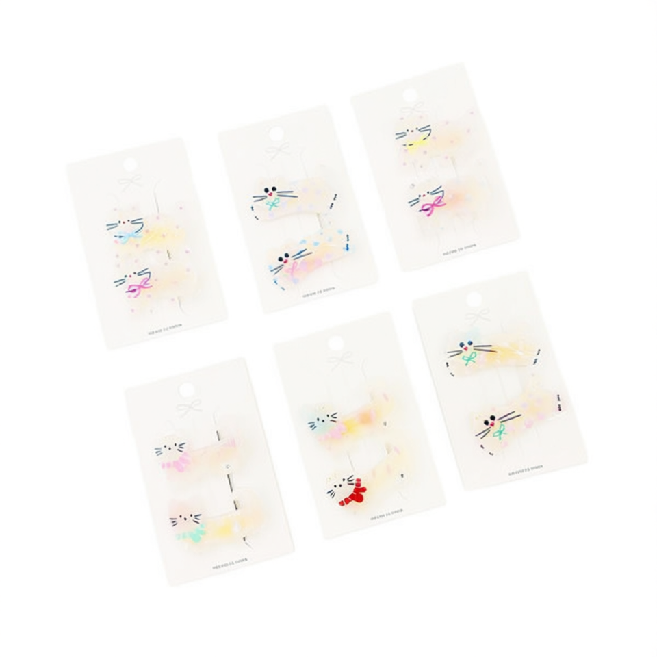 Kitten Series Hair Clips For Kids Plastic Cartoon Design Daily Use High Quality Cardboard Packaging
