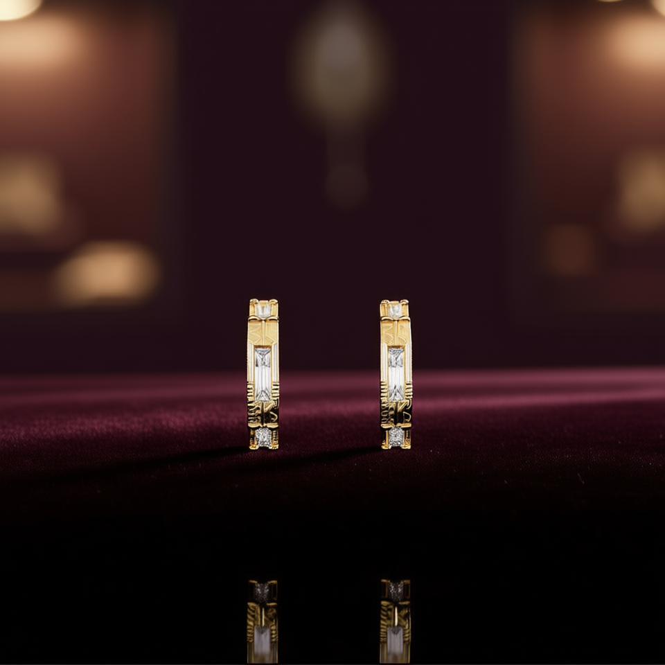 Orecchini a lobo Klunker in oro massiccio 18 carati con diamanti taglio baguette, incastonatura a canale, geometrici, classici, da donna, per tutti i giorni