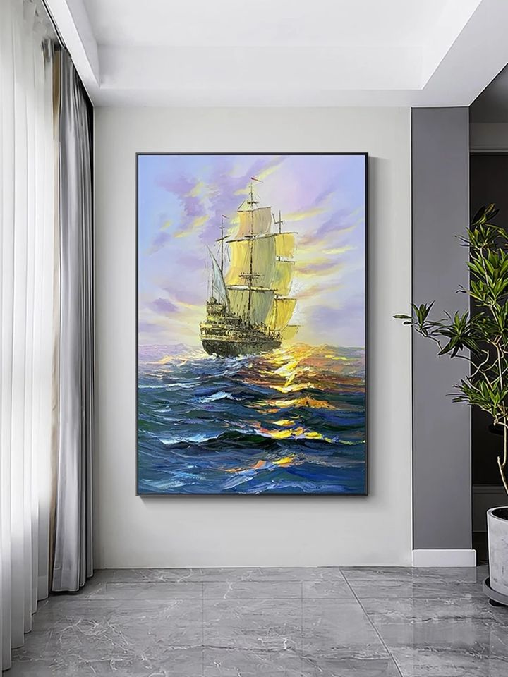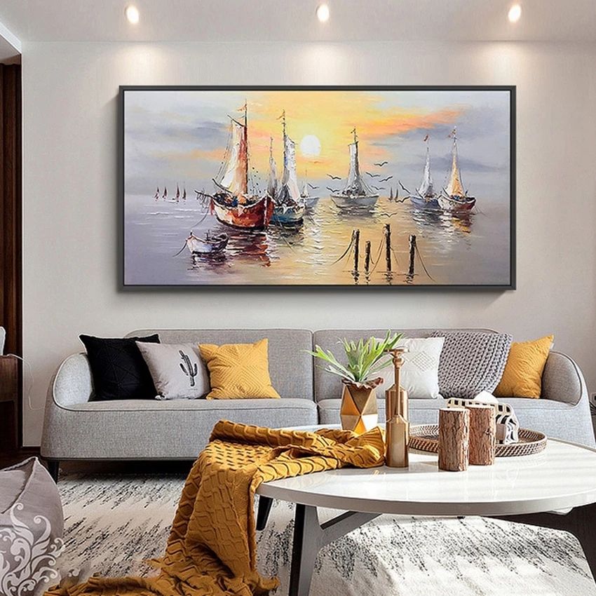 Knife Sea Boat Handmade Abstract Oil Painting on Canvas Large Size Wall Painting for Living Room