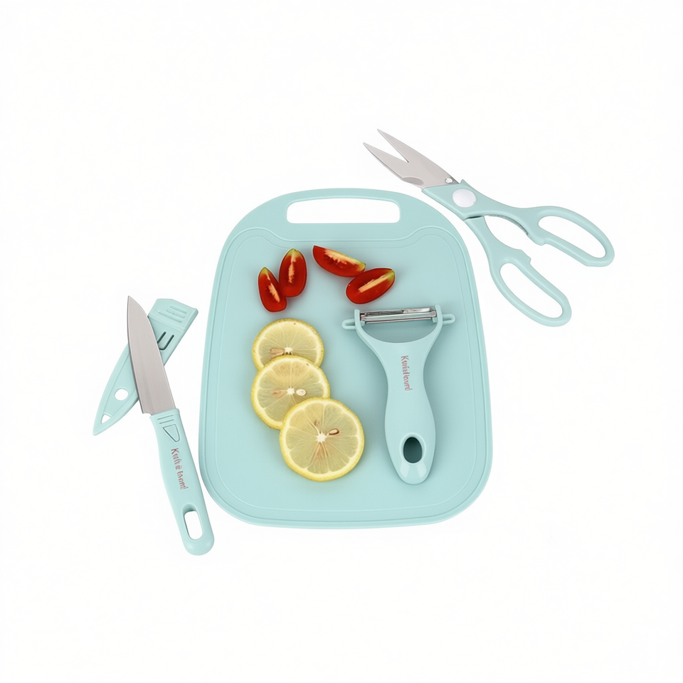 Myrva Knife Set With Board 4 Piece Aluminum Blade Plastic Handle Serrated Edge Ambidextrous Kitchen Cutlery