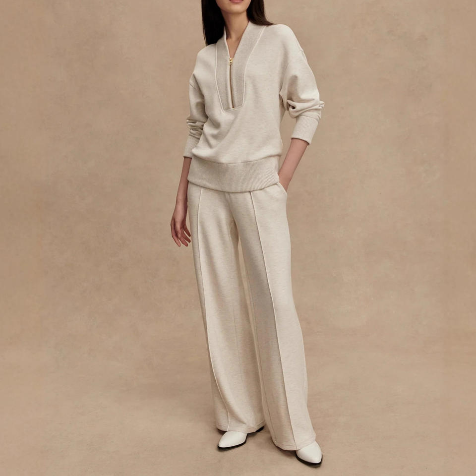 Completo da donna in maglia a costine, giacca corta e pantaloni in velluto, elegante set due pezzi di lusso con zip