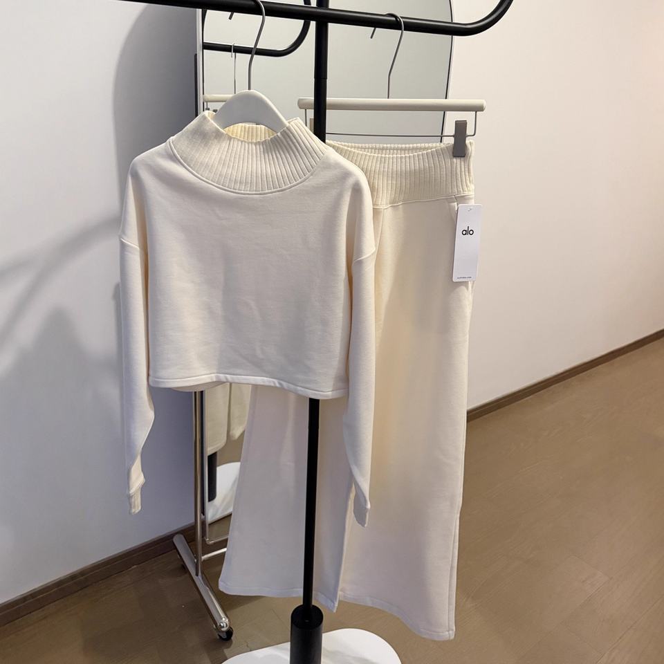 Pantaloni Sportivi Casual da Donna Bianchi con Gamba Larga, Vita Media e Coulisse, in Maglia con Patchwork, per Autunno