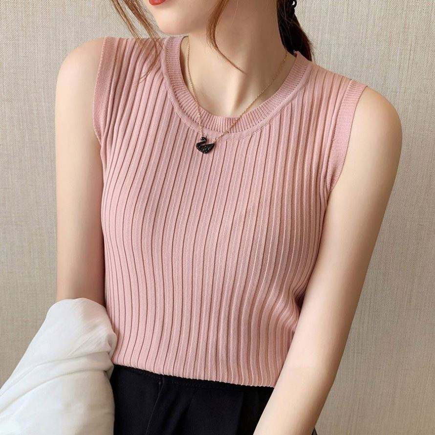 Knitted Vests Women Top O-neck Solid Tank Blusas Mujer De Moda Spring Summer New Fashion Female Sleeveless Casual Thin Tops