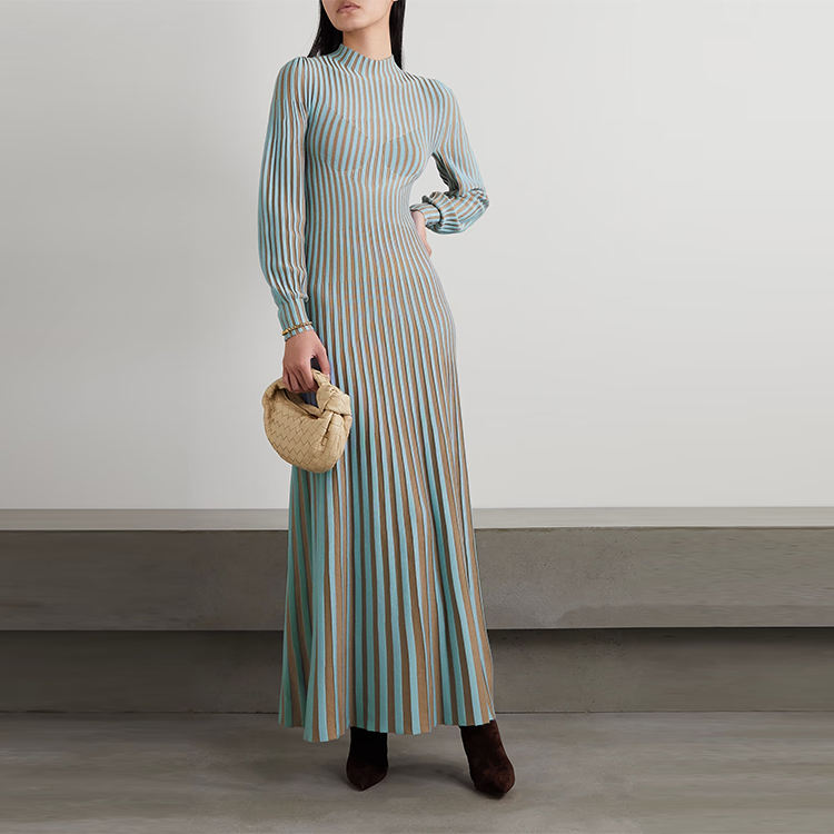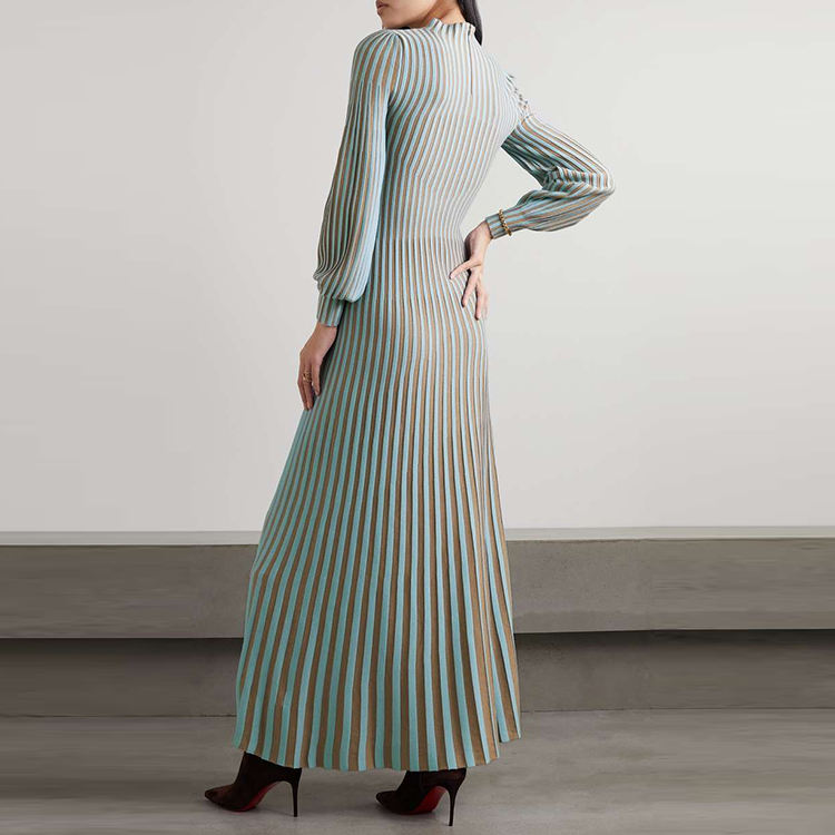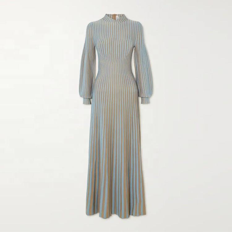 Knitwear Manufactured Custom Autumn Winter Crew Collar Long Sleeve Elegant Casual Striped Knit Women Sweater Dress