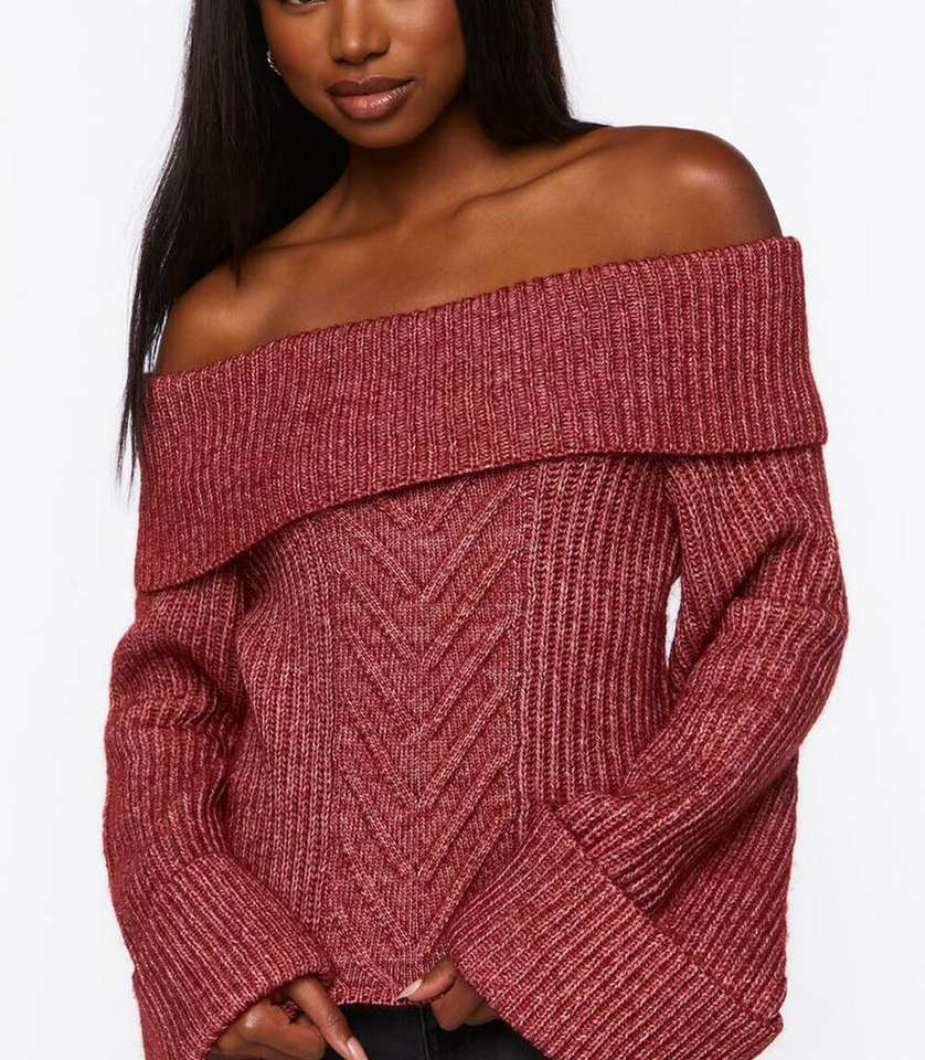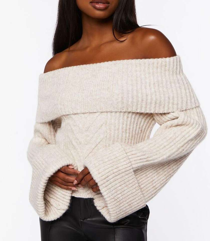 Product Name:Women Knit Foldover Off The Shoulder Sweater