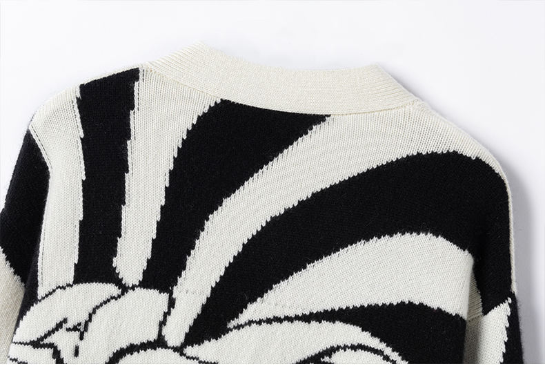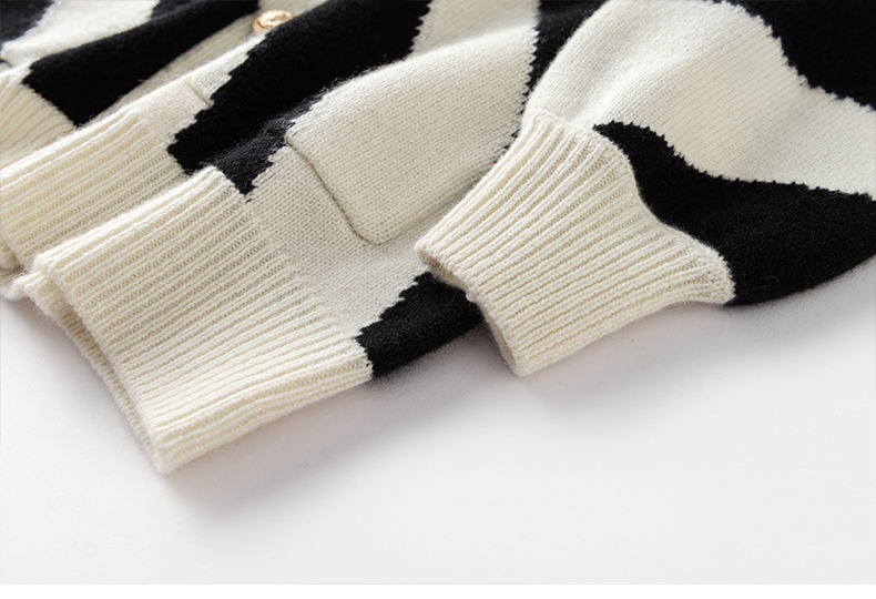 Knitwear Manufacturer Custom Europe Trendy Knitted Women V Neck Long Sleeve Zebra Striped Outfit Sweater Long Cardigan