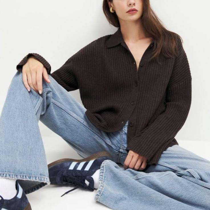 Knitwear Manufacturer Custom Knit Polo Collar Cardigan Ladies Triple Ply Brown Recycled Wool Cashmere Sweater Women with Buttons