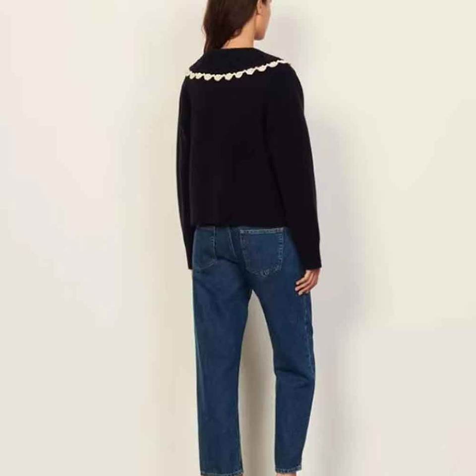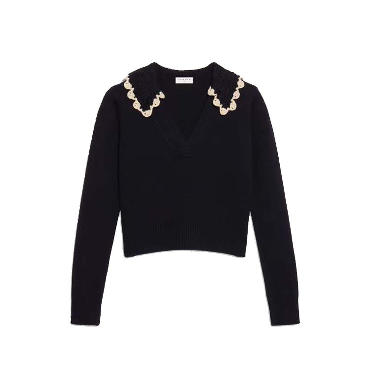 Knitwear Manufacturers Custom Autumn Winter Black Polo Collar Long Sleeves Women's Pullover Sweater