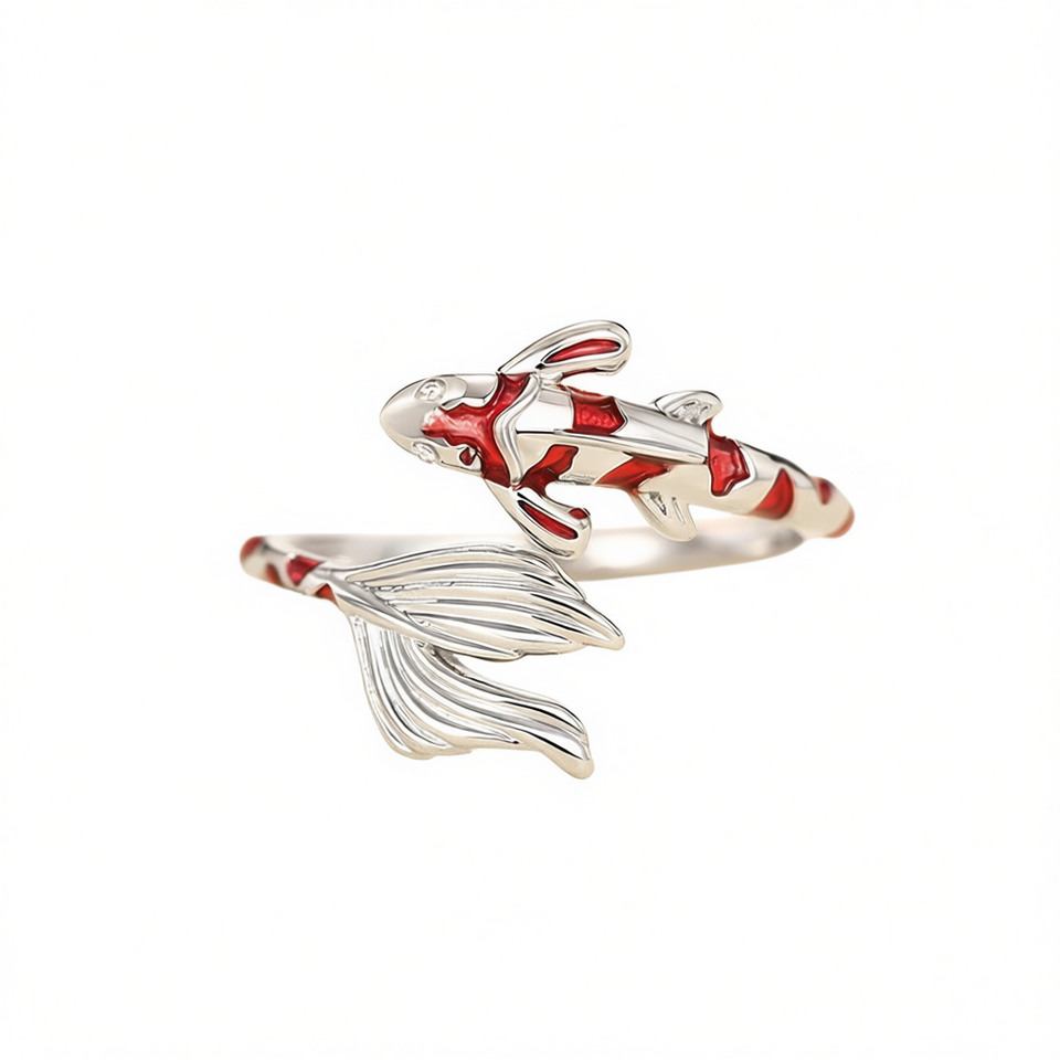 Anello con Pesce Koi in Lega Placcata Argento 925, Smaltato, Unisex, Gioiello di Moda Carino, Regalo per Uso Quotidiano