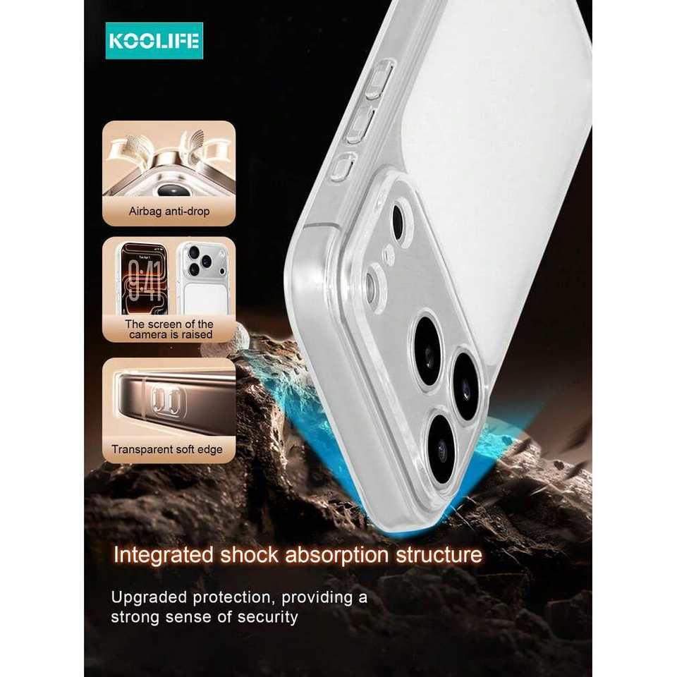 Koolife for 17promax Phone Case TPU Soft Case Large Window Transparent Lens Protection White Unisex