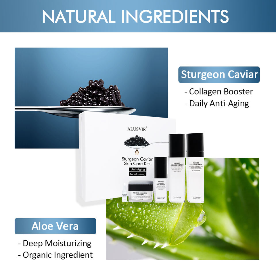Korea Oem Beauty Organic Sturgeon Caviar Face Whitening Anit Aging Facial Cleanser Serum Lotion Cream Eye Serum Skin Care Set