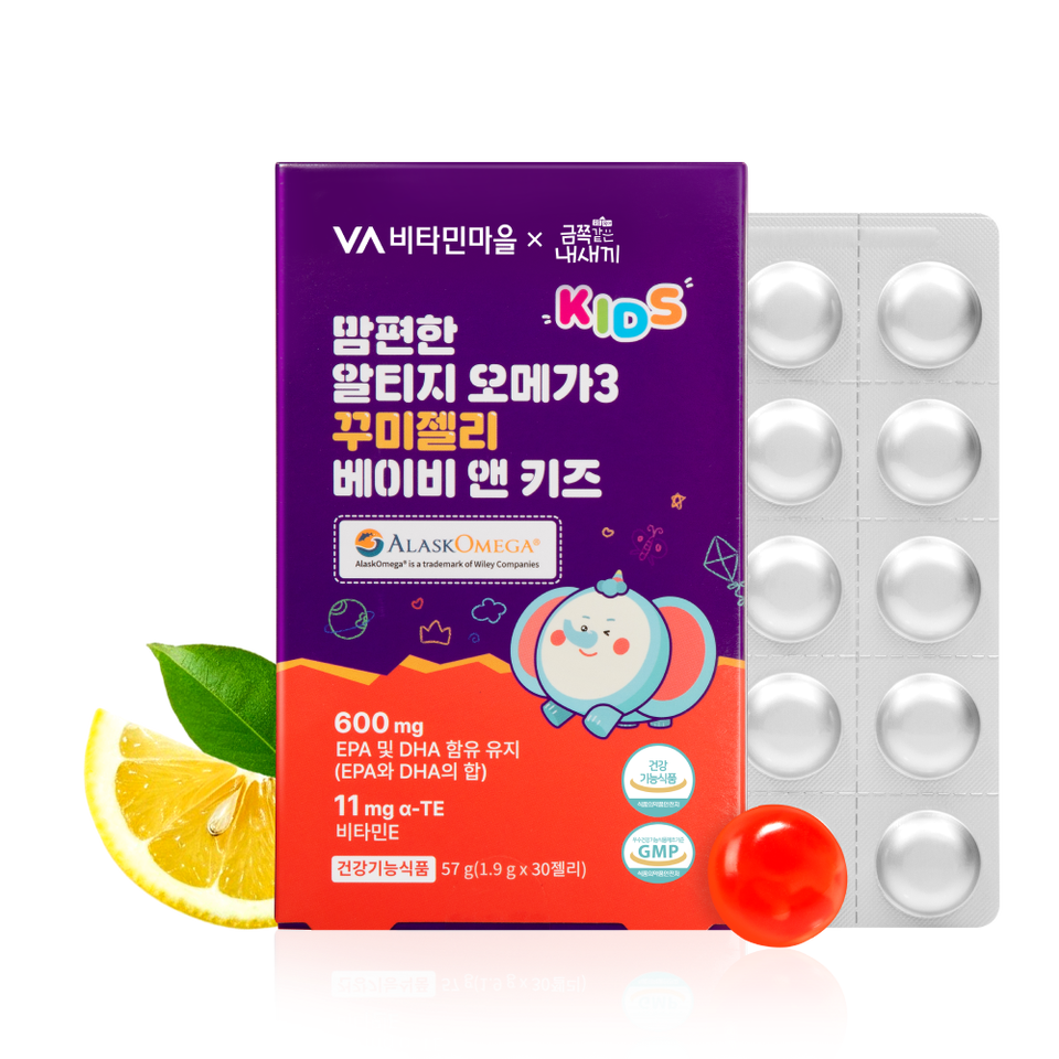 Korea Vitamin Village Mom Comfort rTG Omega 3 Gummy Jelly for Kids and Baby Alaska Fish Oil DHA EPA with Vitamin E 30 Jellies
