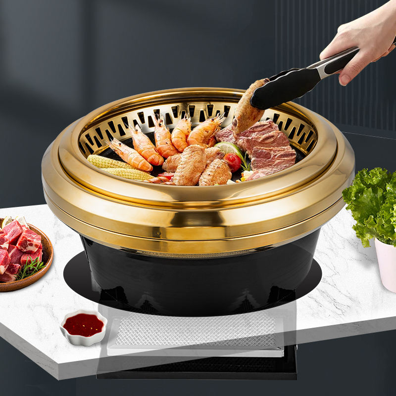 Korean BBQ Indoor Restaurant Table Smokeless Circular Electric Grill with Stainless Steel 1600W Trolley for Indoor Use