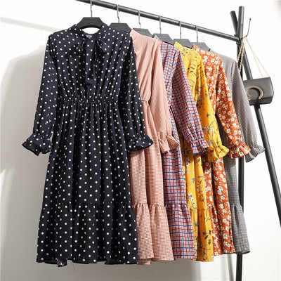 Korean Black Shirt Vestidos Office Polka Dot Dress Women Vintage Dresses Midi Floral Long Sleeve Dress Female