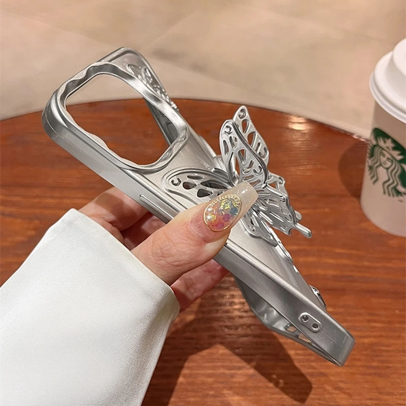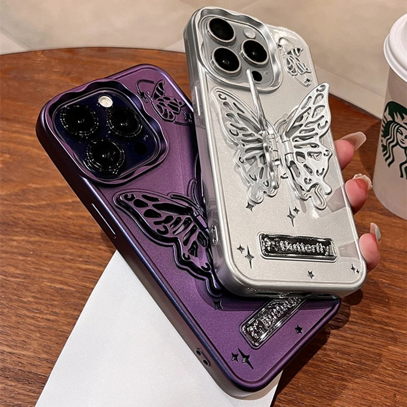 Custodia per telefono con staffa a farfalla in stile coreano per iPhone 12 13 14 15 Pro Max Cover antiurto con supporto in Silicone morbido