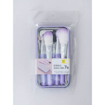 Korean Mini Makeup Brush Set 7-Piece Tin Case Collection
