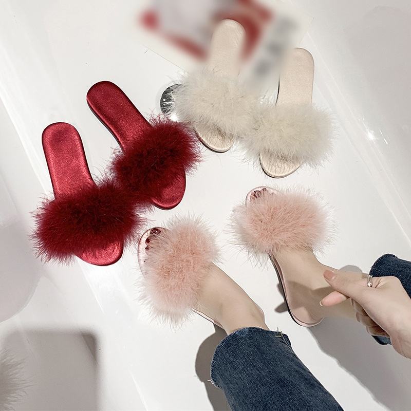 Nuovo coreano pantofole di pelliccia a fondo piatto per le donne che indossano alla moda sandali Casual estivi in tinta unita
