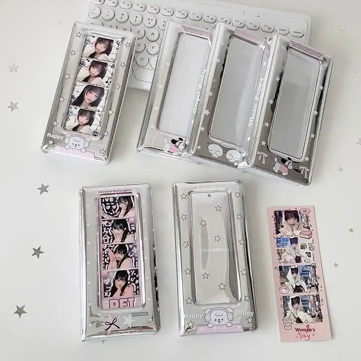 Korean Star Chasing Girl Glossy Star Life Four-Grid PVC Business Card Long Strip Big Sticker Kpop Photo Album Photocard Holders