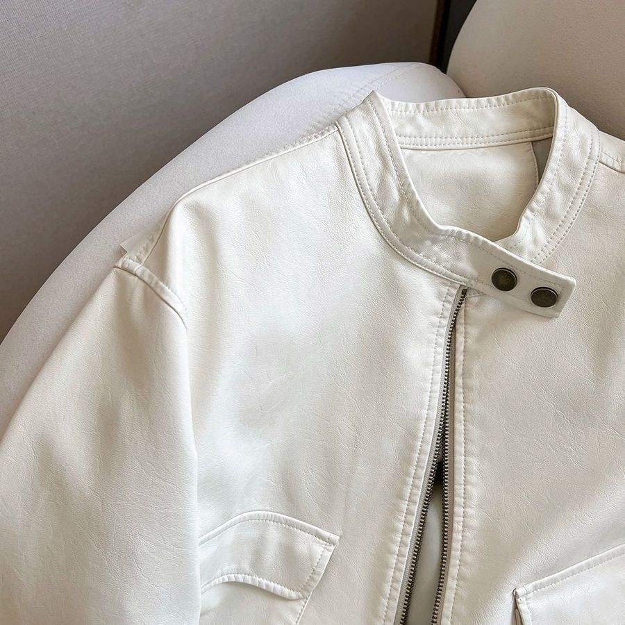 Giacca Corta da Donna in Pelle PU Stile Coreano, Casual, Versatile, con Cerniera, Nuova Collezione Primavera Autunno 2025, Moda Retrò