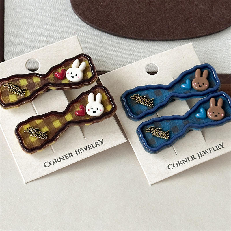 Fermaglio per Capelli in Stile Coreano con Lettere e Cuore in Denim Blu, Elegante Clip Laterale per Frangia, Accessorio Fatto a Mano in Lega per Ragazze