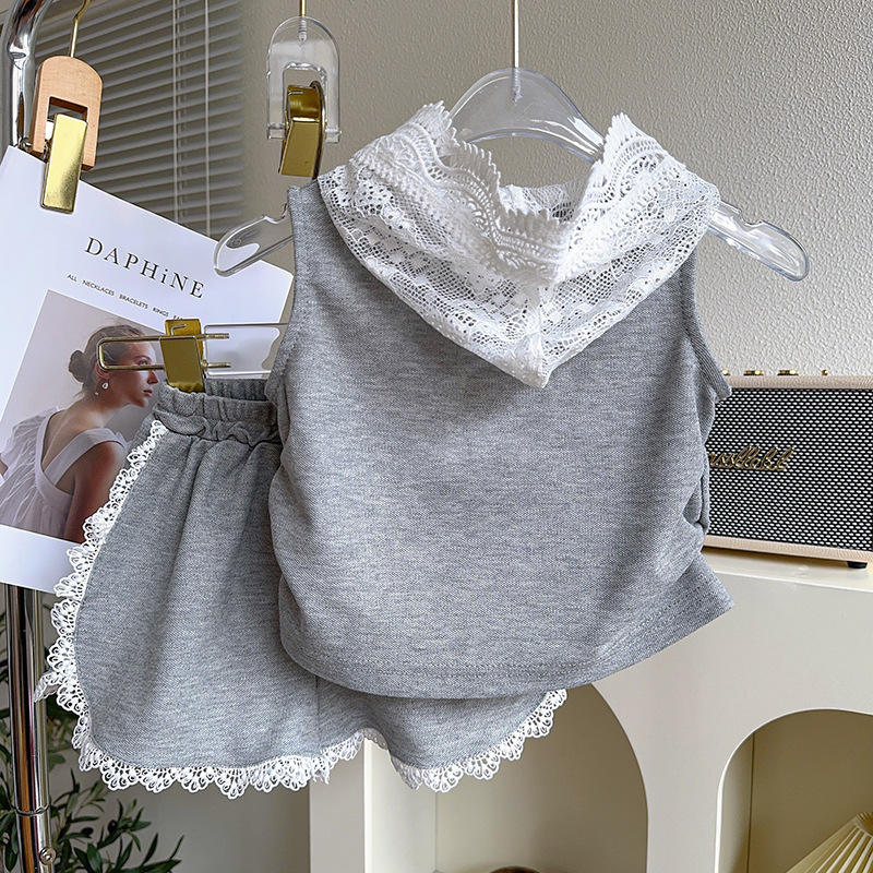 Set di pantaloncini da ragazza alla moda in stile coreano, vestiti estivi da bambina, nuovo Set da due pezzi con cappuccio in pizzo